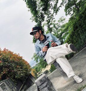 王道のデニムジャケットに、バンドTとワイドパンツを合わせた’’ゆるめカジュアル’’。