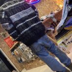 ブラック〜チャコールのモノトーンで構成されており、民族系ニットとしては珍しい落ち着いた配色。