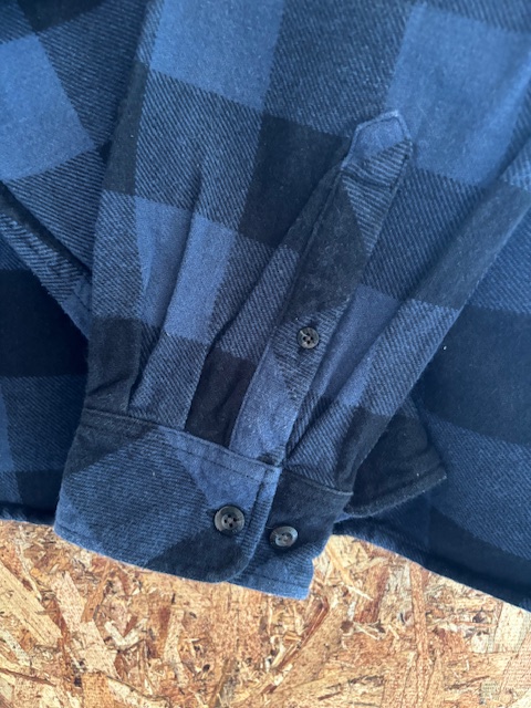 ネイビー×ブラックの落ち着いた配色で、合わせやすく季節感のある一枚です。しっかりとしたコットン生地で、ワークブランドらしいタフな仕上がり。