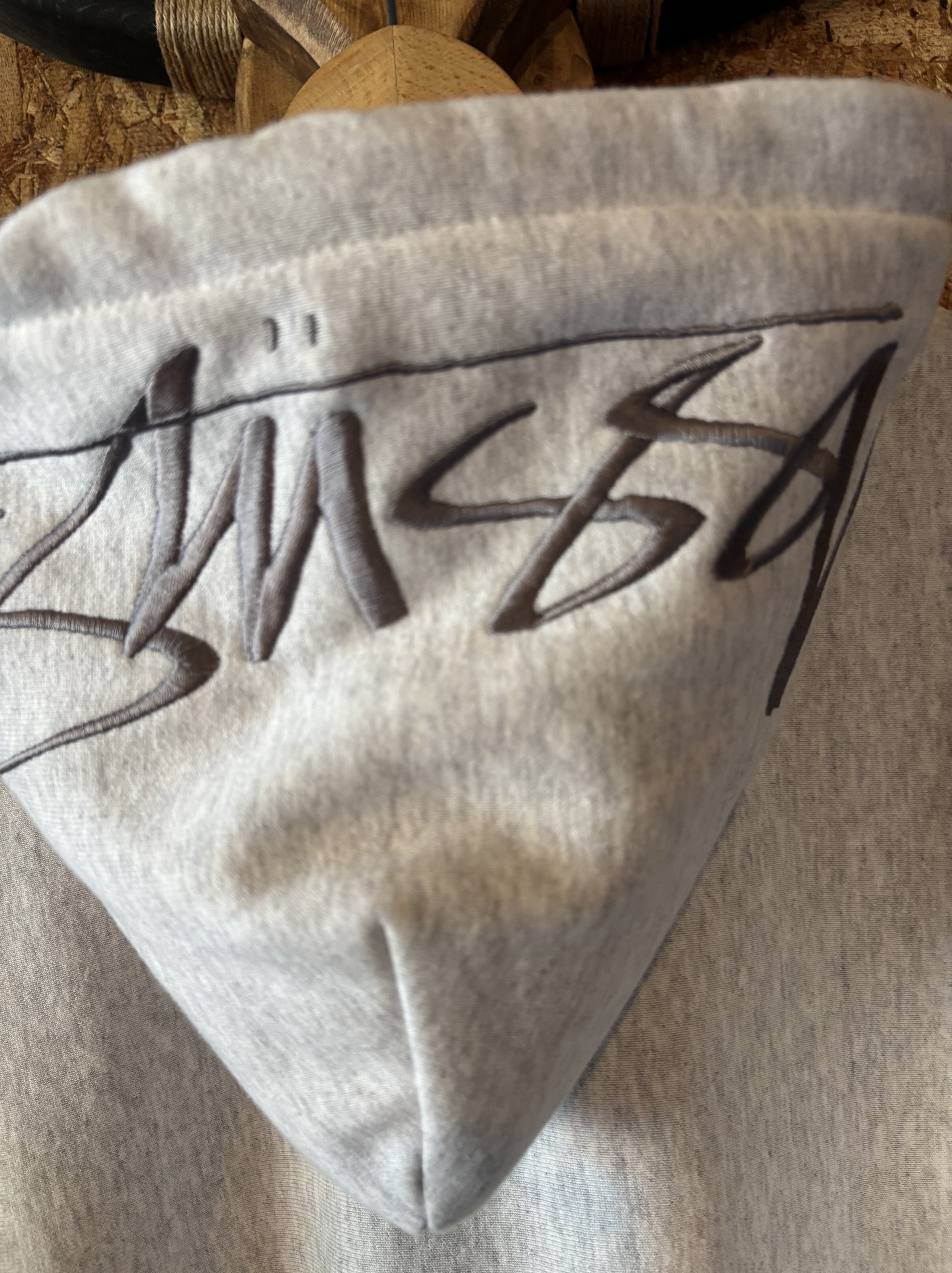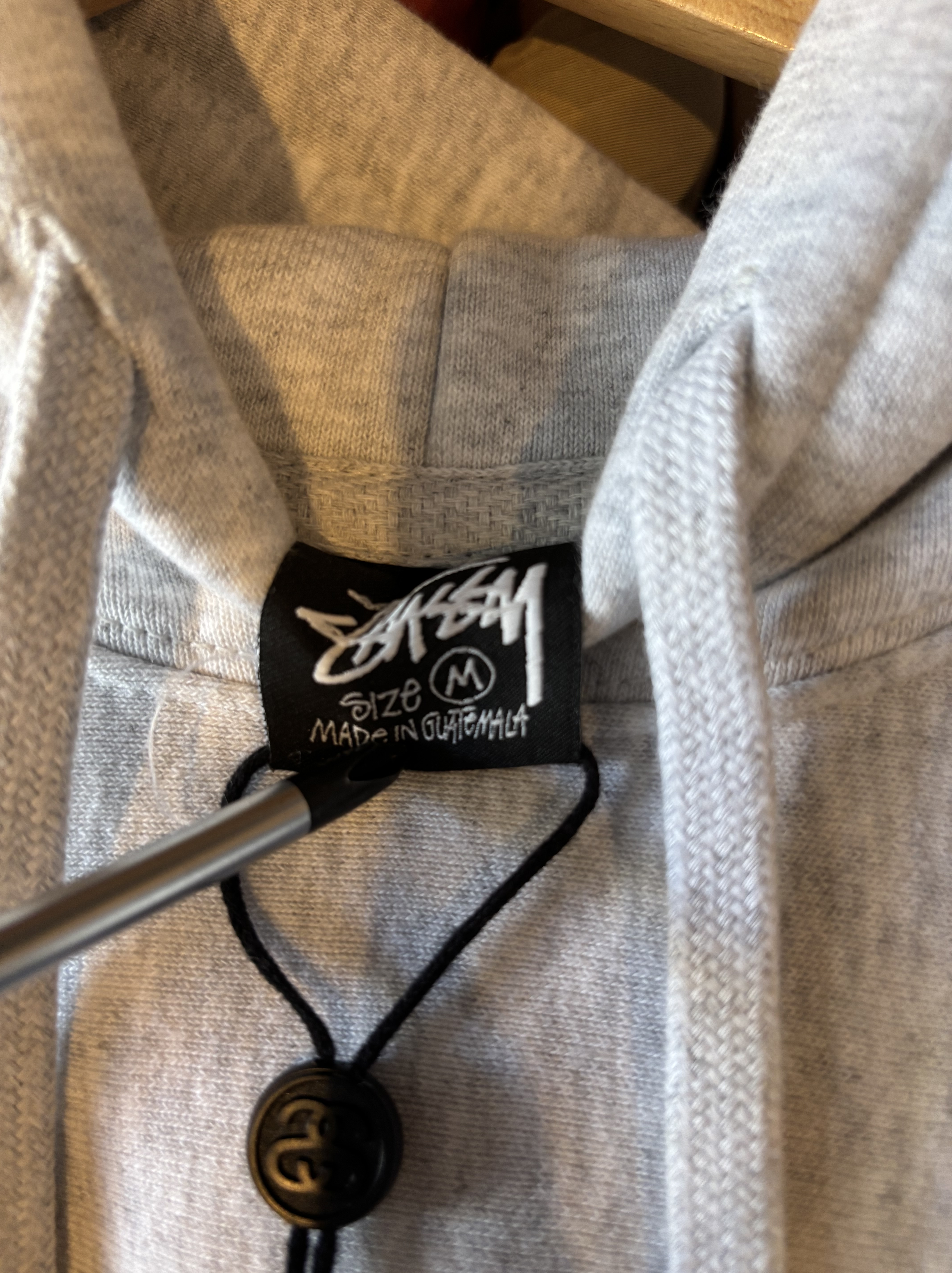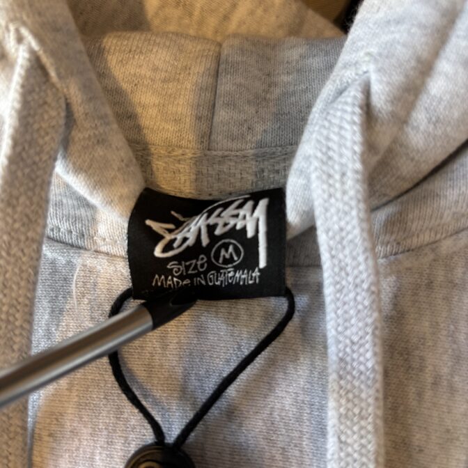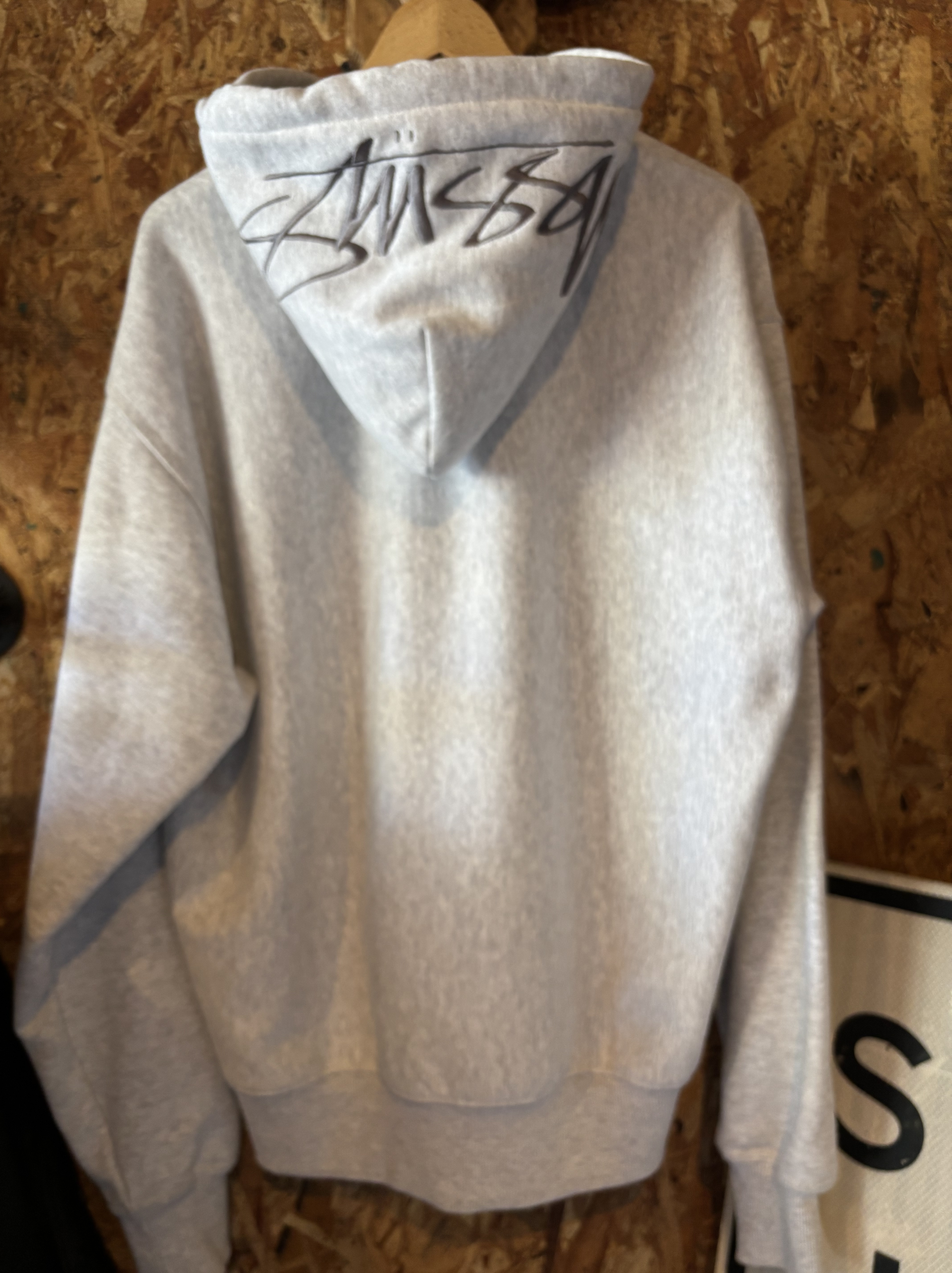 tops STUSSY LOGO入り グレーパーカー 通常価格 17500 円 (税込) ※送料無料 説明 フードの後ろ(首元)に、ブランドの象徴的なショーンフォントロゴが刺繍またはアップリケ(縫い付けられた布地のロゴ)で施されています。 フロントにはカンガルーポケットが付いています。 ドローコード付きのフードと、リブ編みの袖口と裾が特徴です。 素材:一般的に、綿80%とポリエステル20%の混紡フリース素材で作られています。 コメントは受け付けていません。